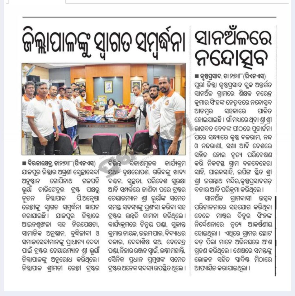 • ଜିଲ୍ଲାପାଳ ଙ୍କୁ ସ୍ୱାଗତ
